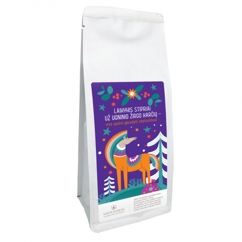 Laikykitės stipriai už Ugninio Žirgo karčių, nes ateinantys metai bus kaip niekad stebuklingi. Pamatysit – vos spėsit stebuklus gaudydit! Todėl būtinai jums prireiks šios kavos, kad išsilaikytumėt balne! Linkime šuoliais skrieti į ateitį!